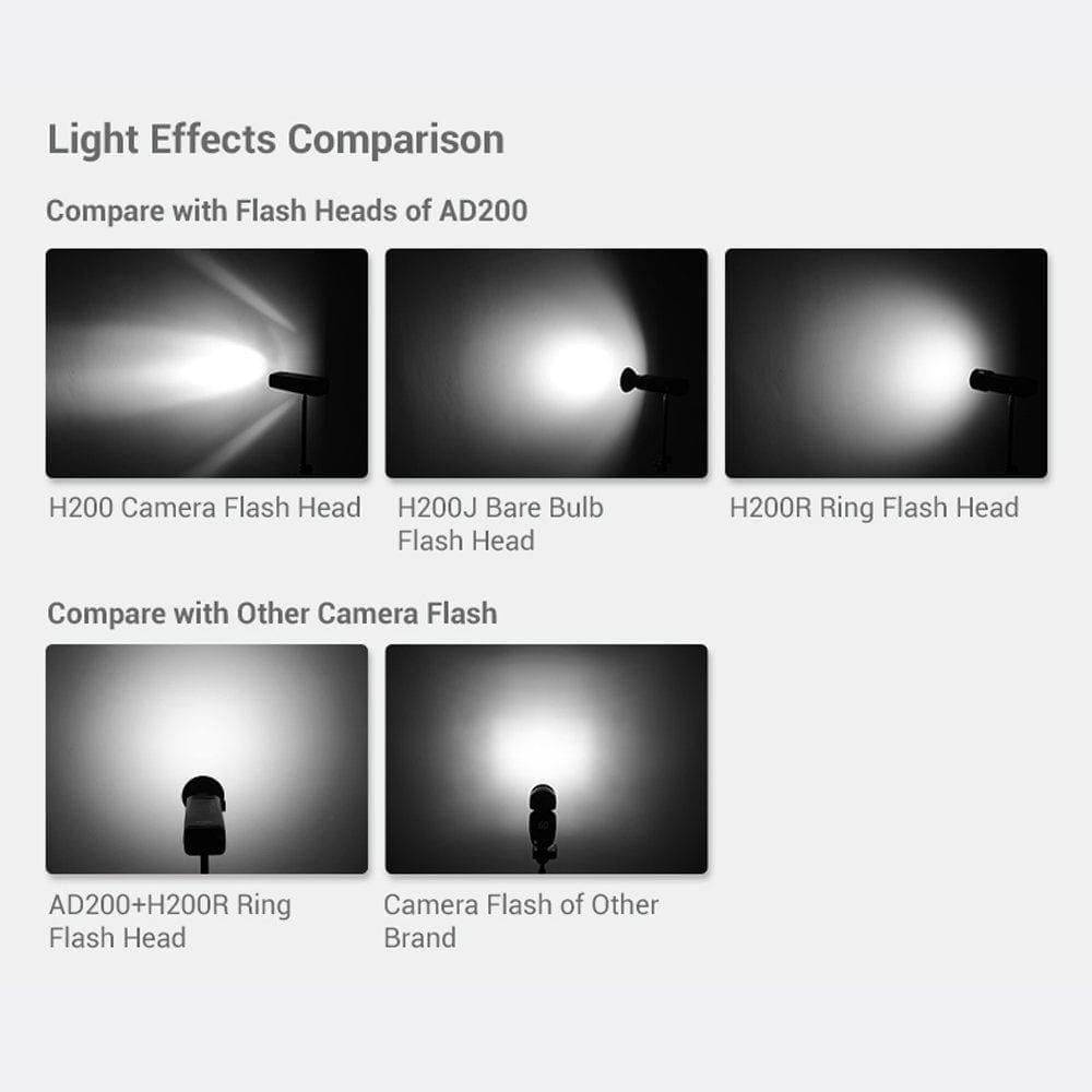 Godox introduces another leap in the evolution of the outstanding X System Family. The much anticipated H200R Round Modular Flashhead that will produce a natural and pleasing diffused circular light. These do not produce the horizontal bar tube pattern, typical to speedlight Fresnel head hiding out in a round casing. This is not a duplication of the ad200 barebulb modular head fitted in a standard reflector. This is an entirely fresh presentation of a genuinely round head with a bare bulb centered and positioned vertically within a bowl reflector that maximizes the output and delivers a clean light pattern.