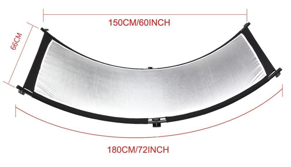 • The 58.5″ width of the silver reflector has a concave curve that follows the contour of the eye and creates an attractive, uninterrupted, arc-like reflection
