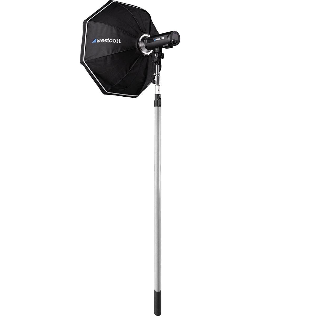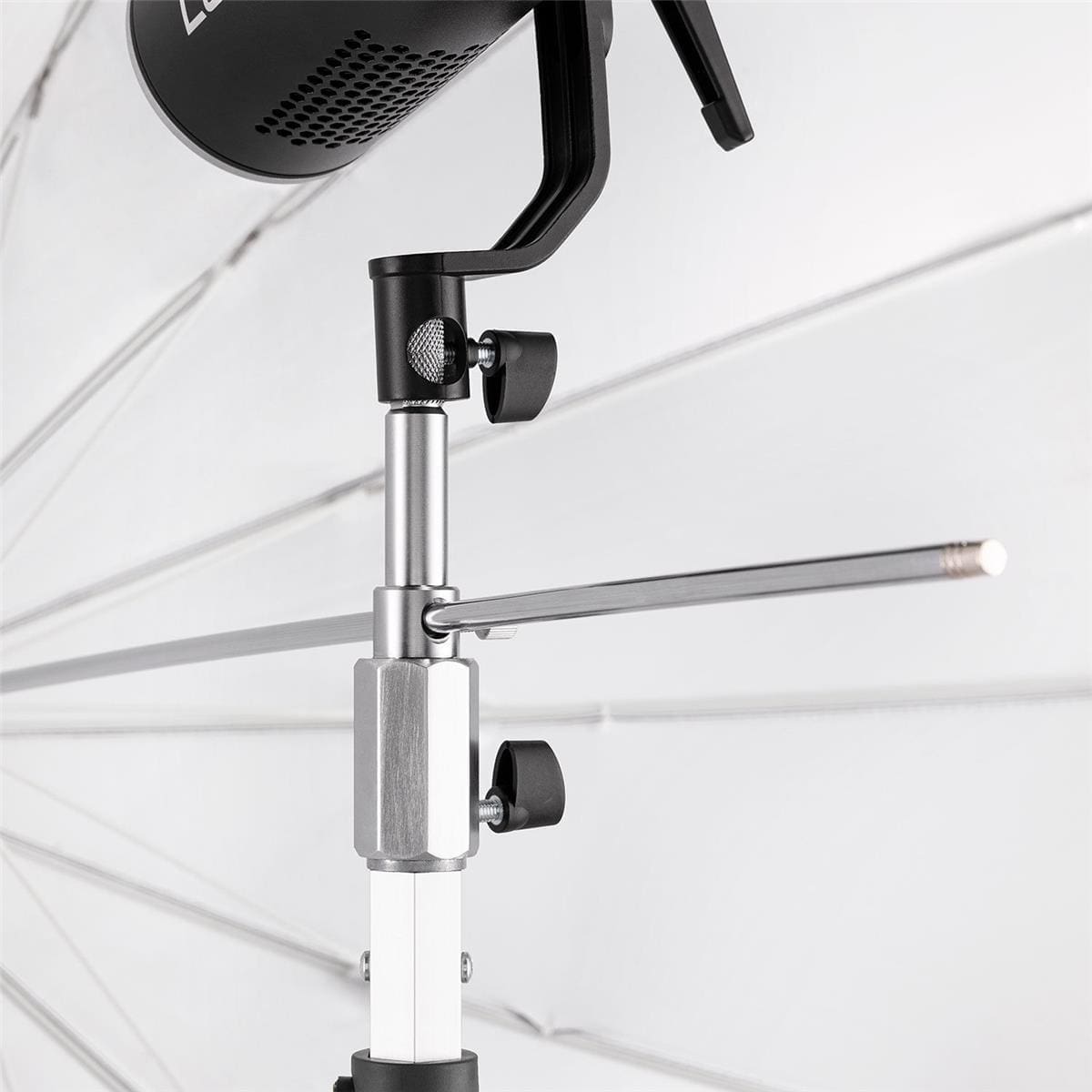 • Umbrella receptacle with tension knob for securing light modifiers