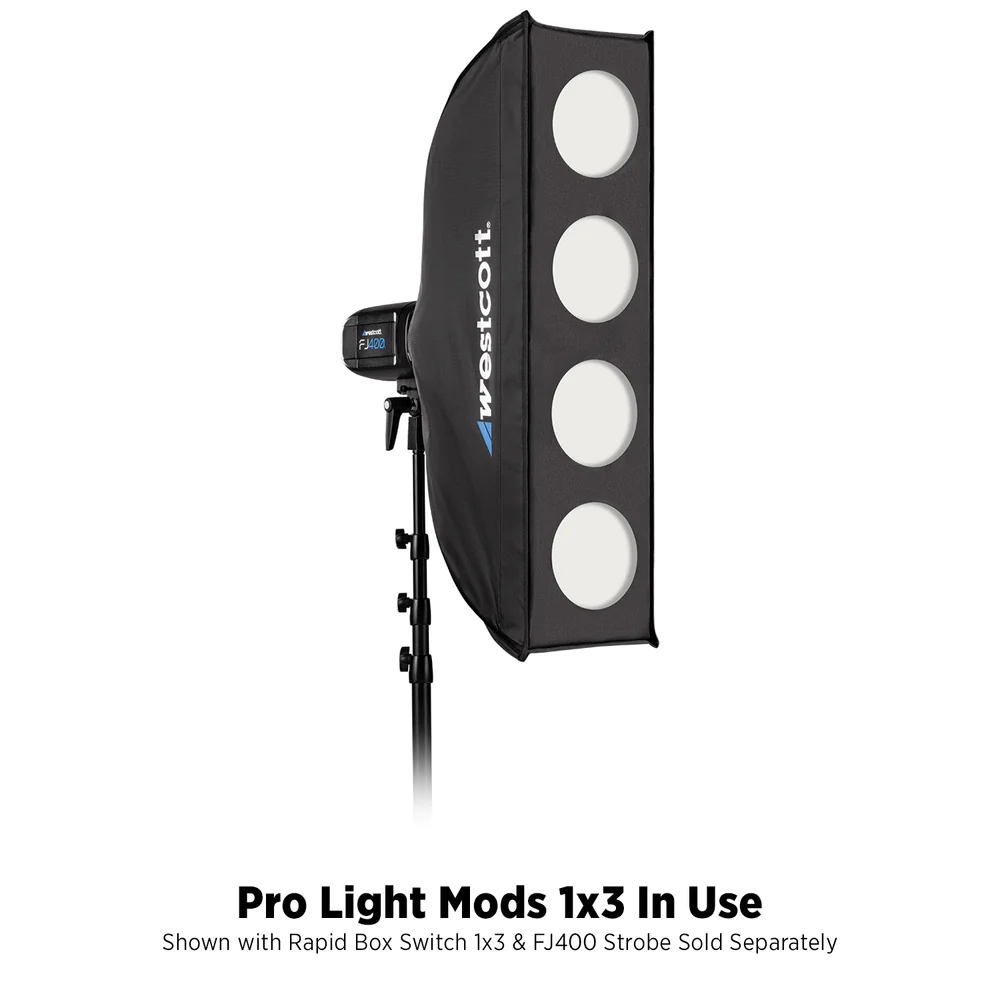 This innovative softbox cover transforms your softbox into a Hollywood-style light bank or stadium lights. Compatible with the Rapid Box Switch and other softboxes, Pro Light Mods allow you to make creative background lighting and capture stunning images directly in-camera to elevate your photoshoots. Perfect for sports, fashion, entertainment, and commercial portraits and video shoots.