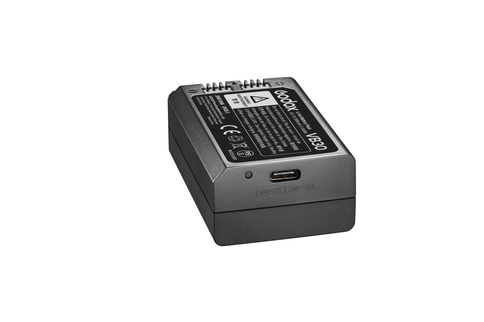 - Li-Ion Battery Pack: The VB30 is a lithium-ion rechargeable power source.